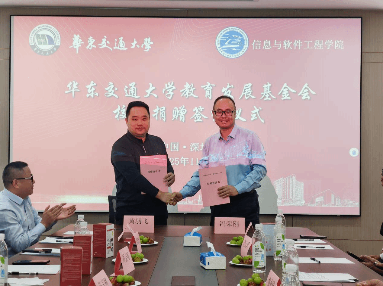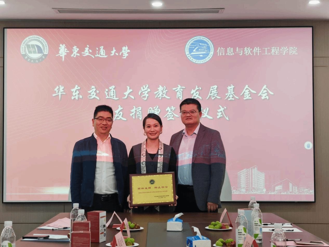 2001级计算机科学与技术校友、江西北辰轨道交通设备有限公司总经理余姝丹签署捐赠协议