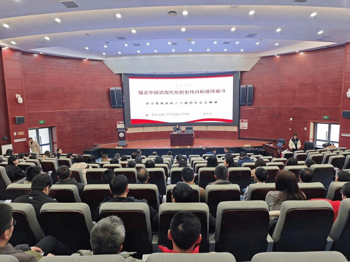 学习贯彻党的二十届四中全会精神宣讲报告会在北区圆形报告厅举行。会议邀请校宣讲团成员、马克思主义学院优创思政工作室负责人徐杰玲副教授作专题宣讲。学院党委书记魏永峰主持会议,学院领导班子成员及全体教职工参加。