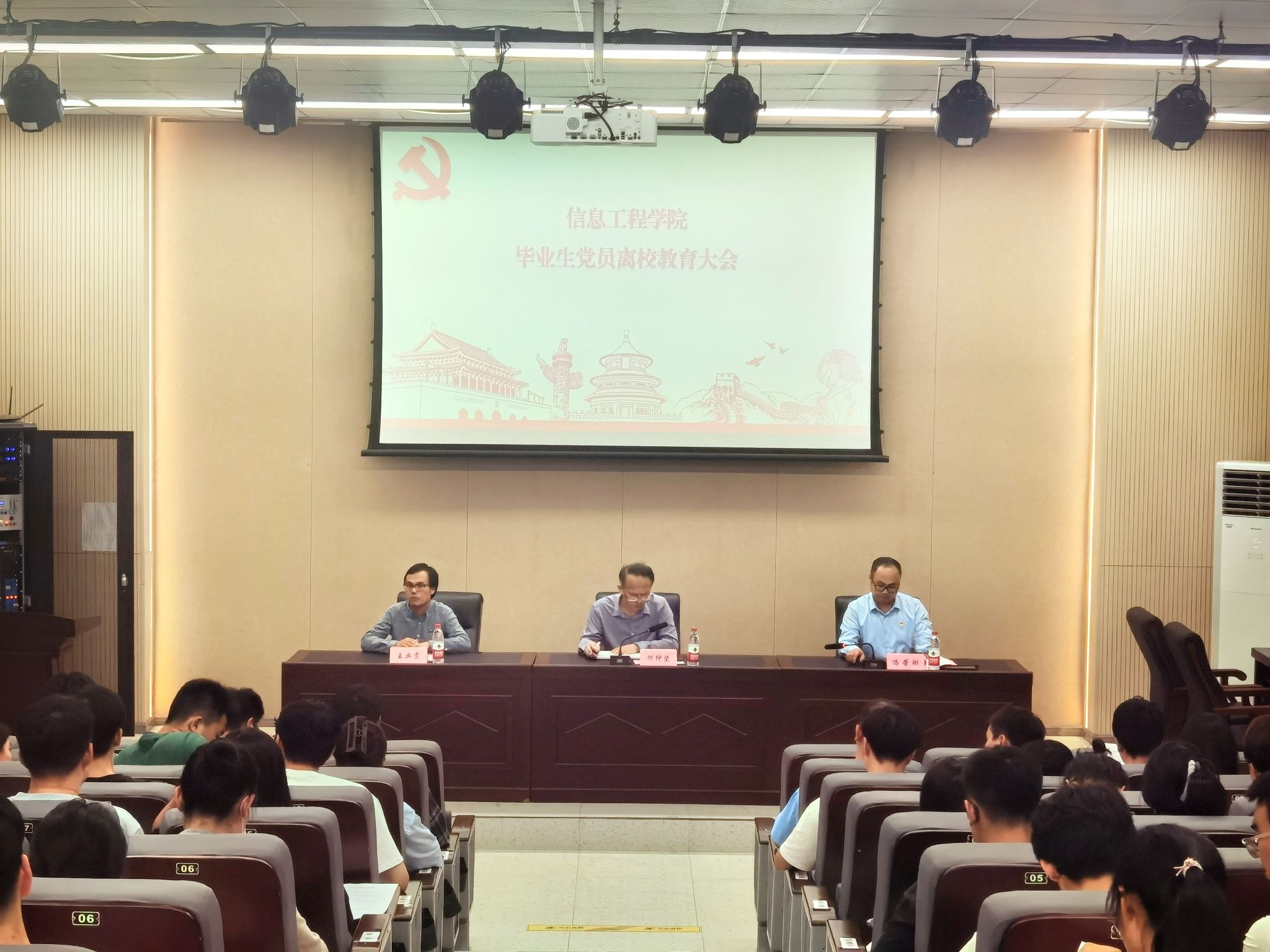 为深入开展党纪学习教育,进一步增强毕业生党员的党性意识和廉洁自律意识,强化毕业生党员的使命感和责任感,5月28日,信息工程学院开展2024届毕业生党员党纪教育。学院党委书记何仲坚以《心中有红线 脚下有底线  做一名合格的共产党员》为题,给全体毕业生党员讲授纪律党课。会议由院党委副书记冯荣刚同志主持。