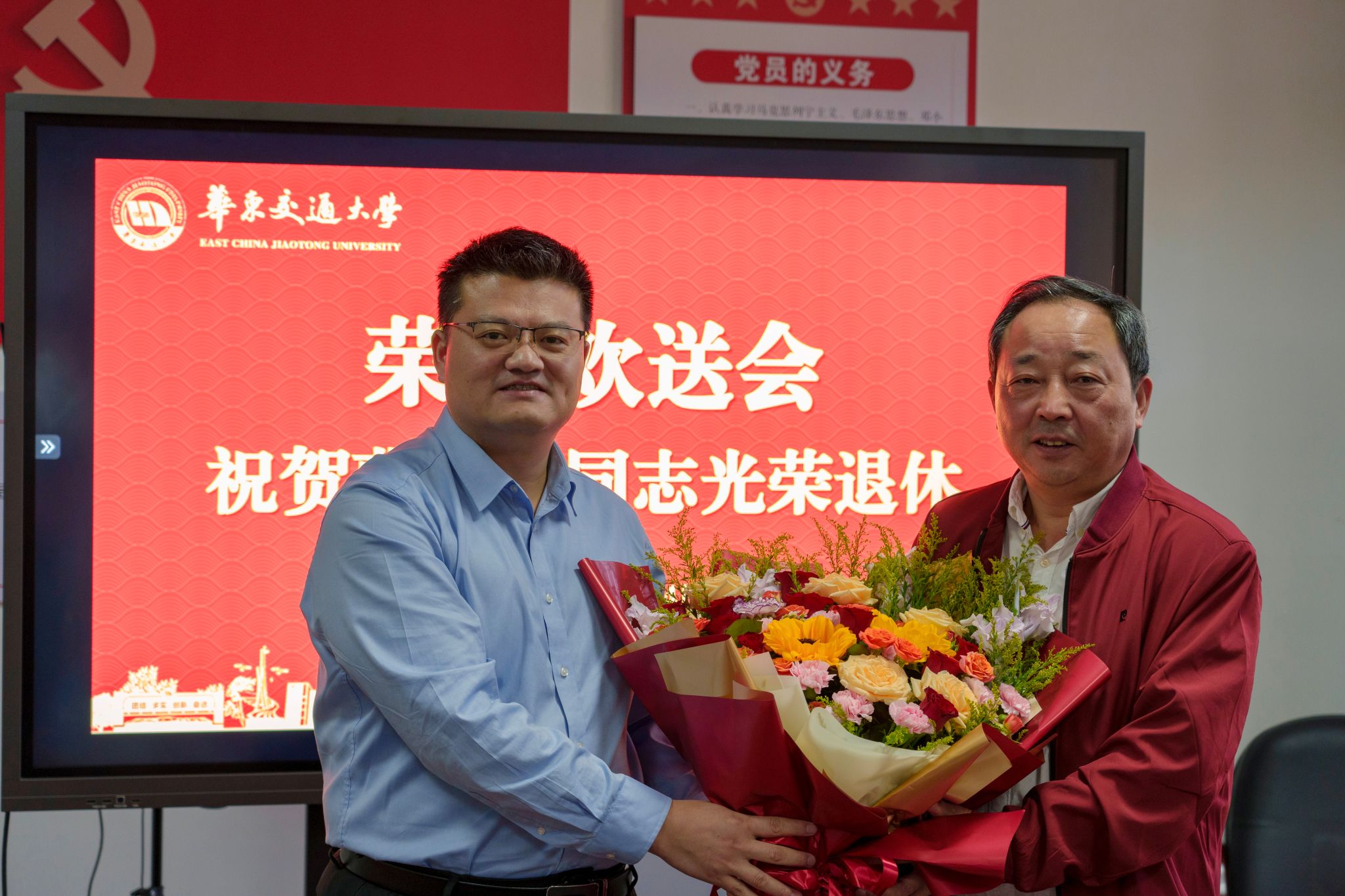 院长姜楠向曹义亲教授敬献学院精心制作的《曹义亲教授纪念册》和鲜花,表达了学院的诚挚谢意和美好祝福;软件工程系集体赠送了纪念礼物。