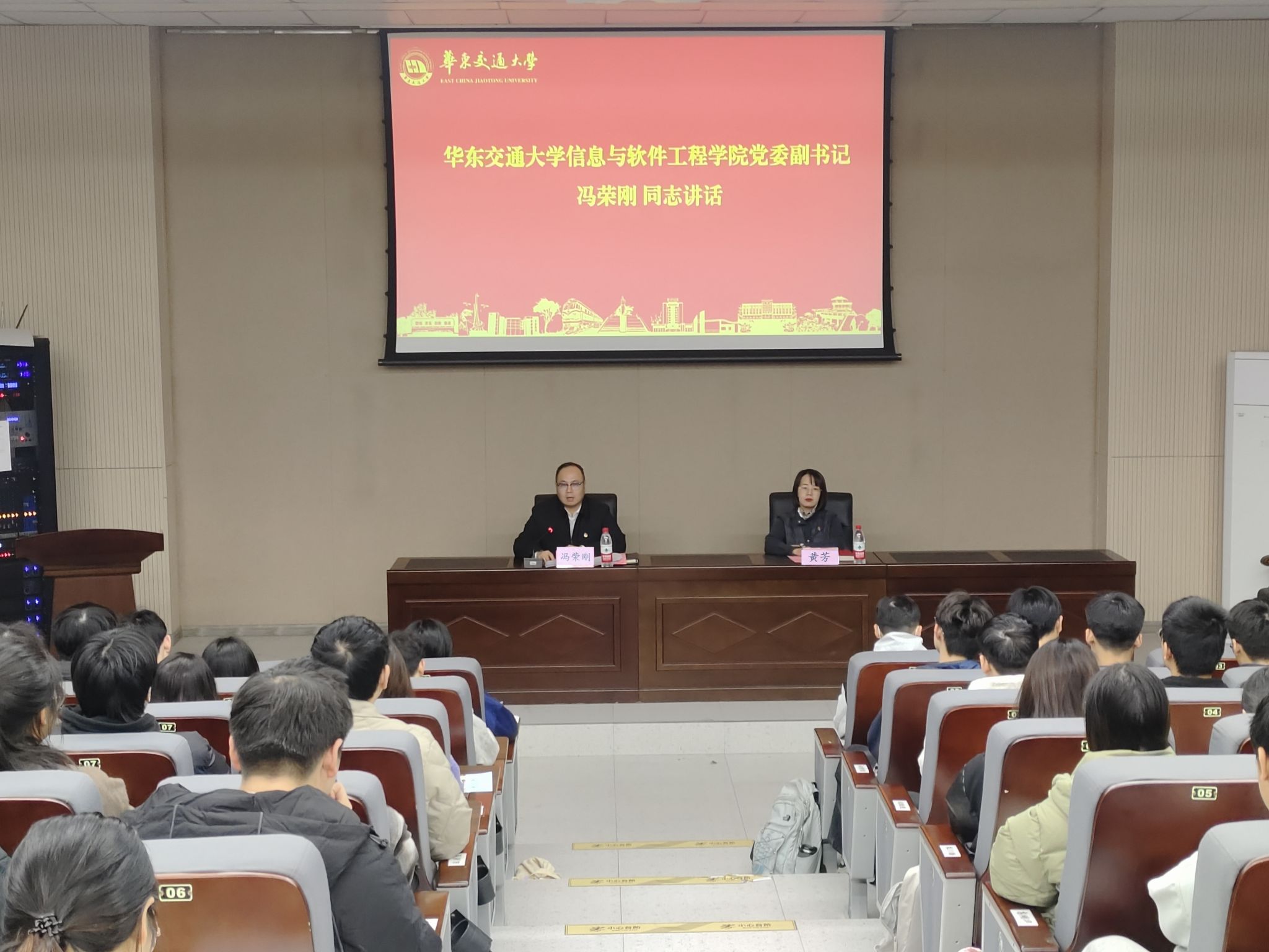冯荣刚为学员们解读了学院党建品牌“红‘芯’闪闪”的深刻内涵,鼓励学员们做追梦人、筑梦者,坚持不懈用习近平新时代中国特色社会主义思想凝心铸魂,深刻领会“两个确立”的决定性意义,坚决做到“两个维护”,在学习实践、摸爬滚打中增长才干,用奋斗书写青春的华章,争做堪当民族复兴重任的时代新人。