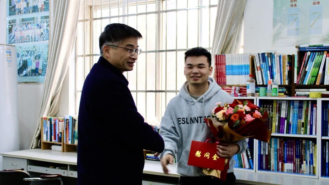 ,亲切慰问了教师代表柳凌峰,对他在教学和科研工作中所做出的杰出贡献表示衷心的感谢,并勉励他继续勇攀科研高峰,不断突破自我,力争在新的一年里取得更加辉煌的成绩。