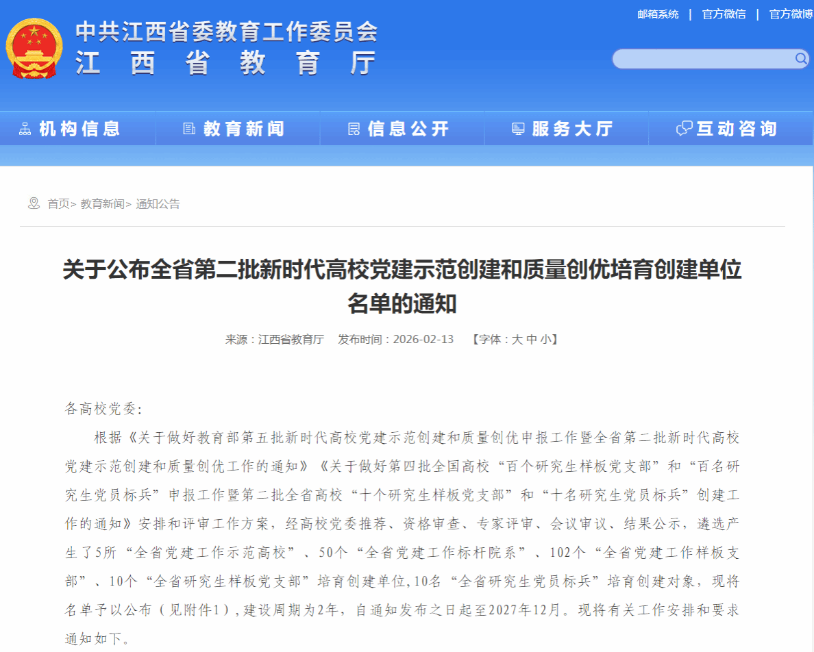 近日,中共江西省委教育工作委员会、江西省教育厅公布全省第二批新时代高校党建示范创建和质量创优培育创建单位名单,91国产