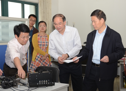 龚绍林还参观了我校射频通信与传感器网络江西省重点实验室、智能信息处理研究所和远程塔机监控系统,对我校服务社会经济发展能力和水平予以肯定。