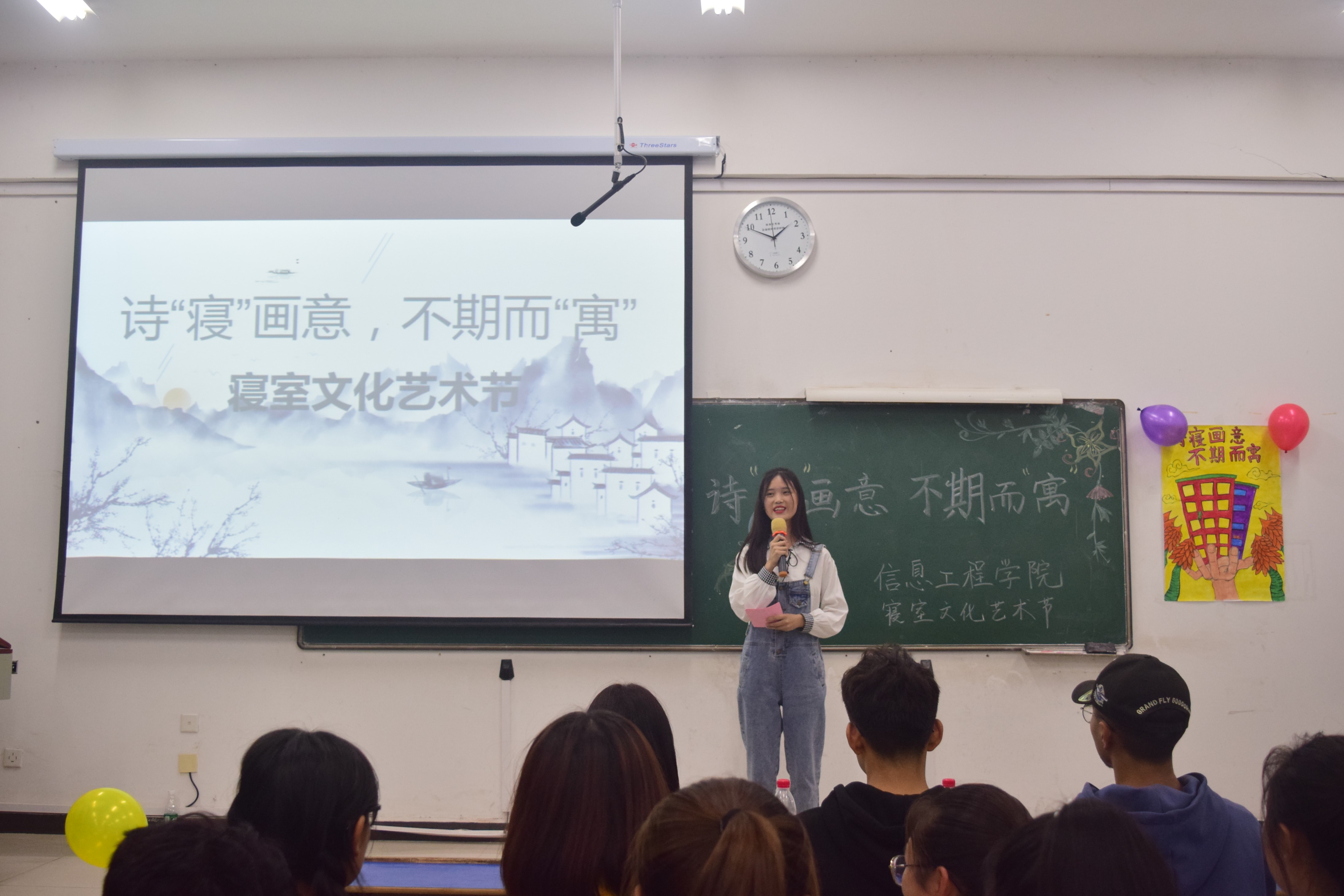 为推进寝室文明建设工作,鼓励寝室成员“走下网络,走出宿舍,走向操场”,信息学院学生会自律部举办“诗‘寝’画意 不期而‘寓’” 寝室文化艺术节活动。11月8日,寝室文化艺术节第一次线下活动在逸夫楼105室开展。信息学院19级12个晋级寝室成员及19级各寝室长悉数到场。