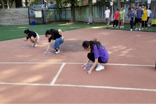 “翻纸牌”环节将纸牌围成一圈,背对着放在地上。每组成员依次上前翻开纸牌,按数字序号翻牌,直到将地上的纸牌全部翻完为止。该环节考验组员的配合程度,在你来我往间传递讯息,为学生会今后的学生工作更好的沟通和交流“打样”。素拓活动还设置“喝苦瓜汁”等惩罚环节。