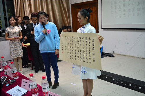 为展现中国传统书画魅力,丰富校园文化魅力,营造浓厚的校园文化氛围。11月19日,由信息、经管、外国语、人文和理学院联合主办的第九届“艺苑杯”决赛暨颁奖晚会在31栋116室成功举办。经管学院党委副书记曾友田、团委老师程丽琴,信息学院团委副书记杨青,理学院团委副书记张萍出席本次大赛。