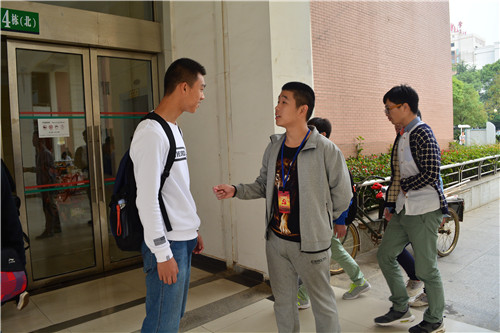 国防生党员刘旭说:“身为国防生党员,我们要有足够的担当意识和奉献意识,花费自己的一点时间来帮助学生规范自己的生活习惯,这是我们党员应该做的事。”