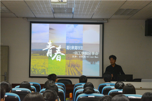 5月24日,由信息学院学术部主办的就业咨询会于学四栋307室举办。本次交流会主讲嘉宾为澳洲悉尼大学硕士学位毕业生、网易江西的投资人之一、资深人力资源经理人文则渊。