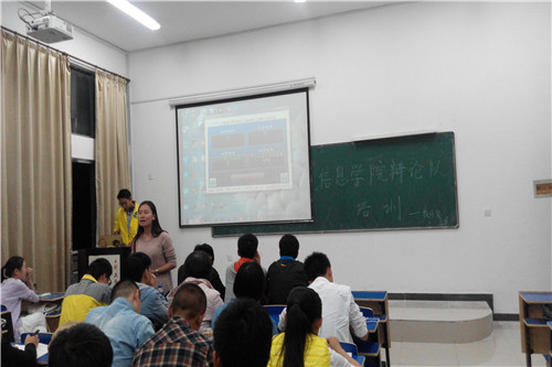 11月4日,信息学院于逸夫楼204开展辩论赛赛前培训。信息学院学生会副主席邹婷婕、辩论队队长胡文涛、学生会学术部部长金克耀出席培训会,各班参赛人员参加此次培训。主讲人为前辩论队副队长王前进及现辩论队副队长方晓。