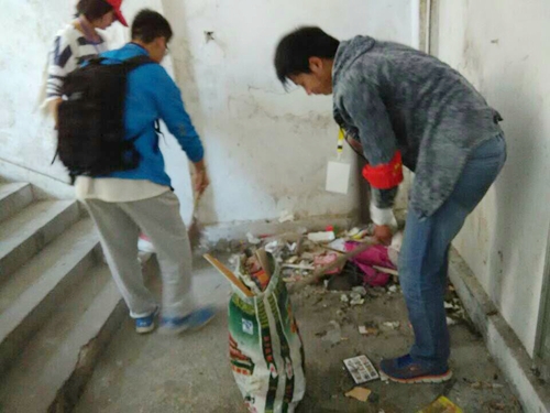 活动中,我校志愿者们不厌其烦地解答老人们的问题,并积极上门为老年人提供服务,有帮助孤老打扫卫生的,有在大街小巷粉刷广告垃圾的,还有清理庭院卫生的,等等。期间,志愿者杨楚莲同学遇到一个走丢的小孩,她沉着冷静,一边安慰小朋友逗他开心,一边帮他寻找妈妈。在大家的努力下,小孩终于回到了母亲的怀抱。