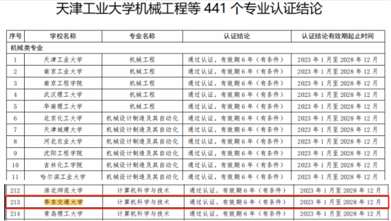 计算机科学与技术专业通过工程教育认证,认证有效期6年(2023年1月至2028年12月)。
