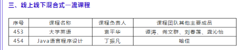 有1门课程《Java语言程序设计》入选(线上线下混合式一流课程1门)。