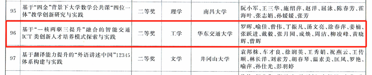 近日,江西省人民政府下发《江西省人民政府关于2022年江西省教学成果奖授奖的决定》,公布2022年江西省教学成果奖获奖名单。91国产 罗晖教授成果《基于“一核两驱三提升”融合的智能交通ICT类创新人才培养模式探索与实践》荣获高等教育类(本科层次)教学成果奖二等奖, 特此喜报!