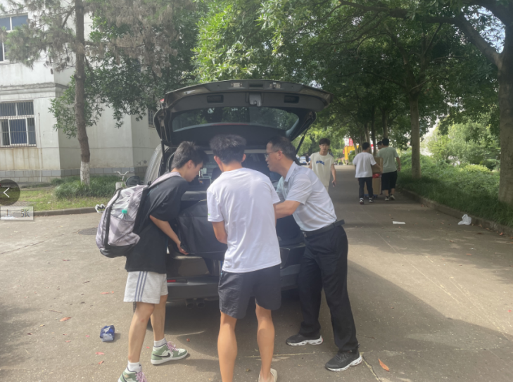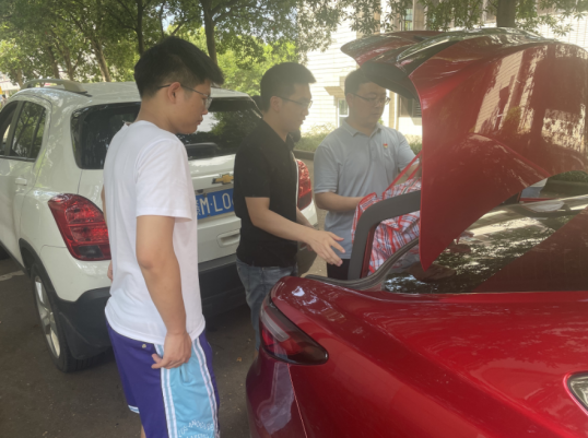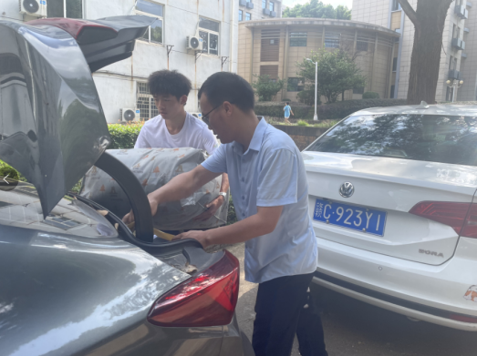 教工党员们也早早来到学生宿舍15栋和5栋楼下,开车来往于各宿舍楼与行李寄存处,帮助学生运送行李,其他志愿服务岗的教工党员和学生党员也充分发挥党员先锋模范作用,一对一帮助同学取送行李。虽然天气炎热,运送行李工作量大,但党员们干劲十足,没有丝毫怨言,他们用实际行动践行了为人民服务宗旨。