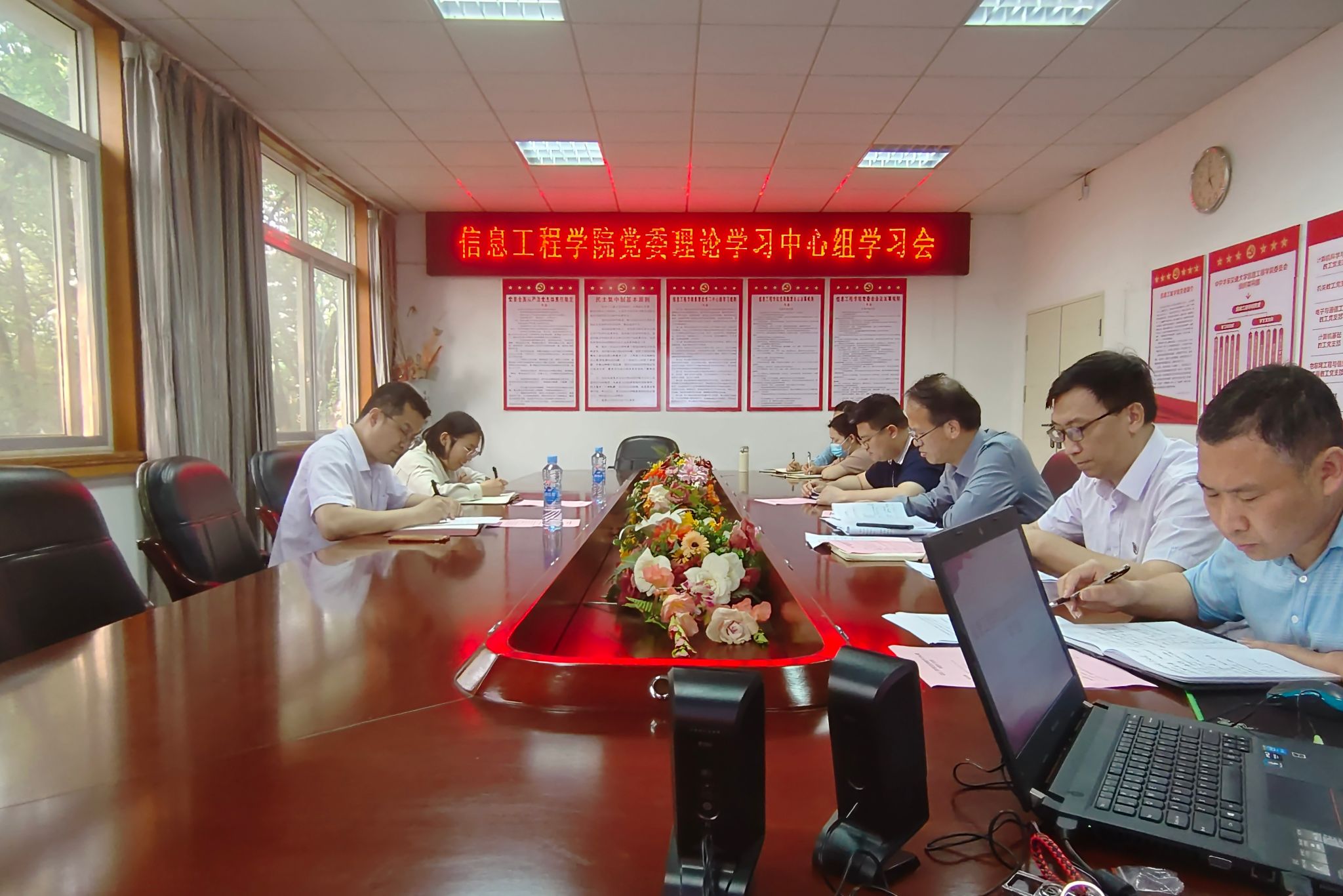 5月18日下午,信息工程学院党委理论学习中心组召开专题学习会,专题学习习近平总书记视察江西重要讲话精神和省第十五次党代会精神。党委理论学习中心组成员参会,天佑学院党委副书记王巍、组织员田艳琼、院党委组织员、党政办主任、党支部书记代表列席旁听,党委书记何仲坚主持学习会。