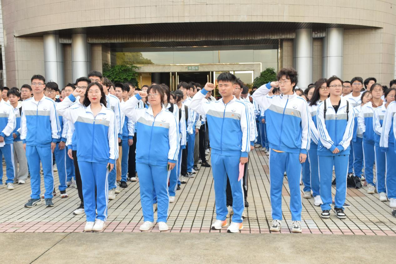为激发共青团员的光荣感、责任感和使命感,增强信息学院团组织的凝聚力和向心力,11月6日,信息学院在教八栋前举行“弘扬时代精神,担当青春使命”国旗下的入团仪式。