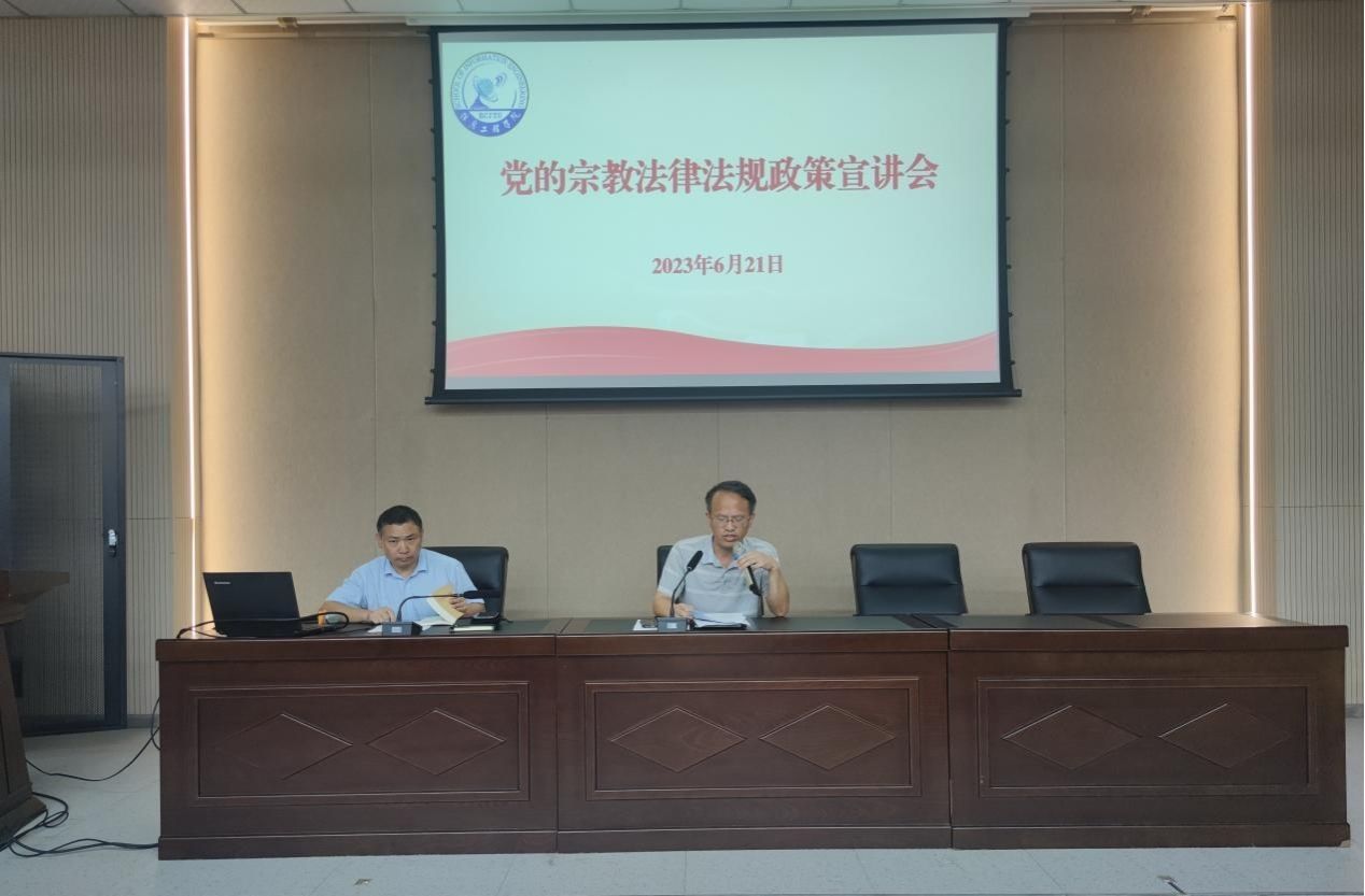 何仲坚围绕马克思主义宗教观和宗教工作基本知识、宗教工作的意义和重要性、党的宗教政策和工作形势、切实做好宗教领域重点工作等方面进行了宣讲,通过宣讲进一步强化全院教职工对党和国家的宗教政策法规的理解和把握。