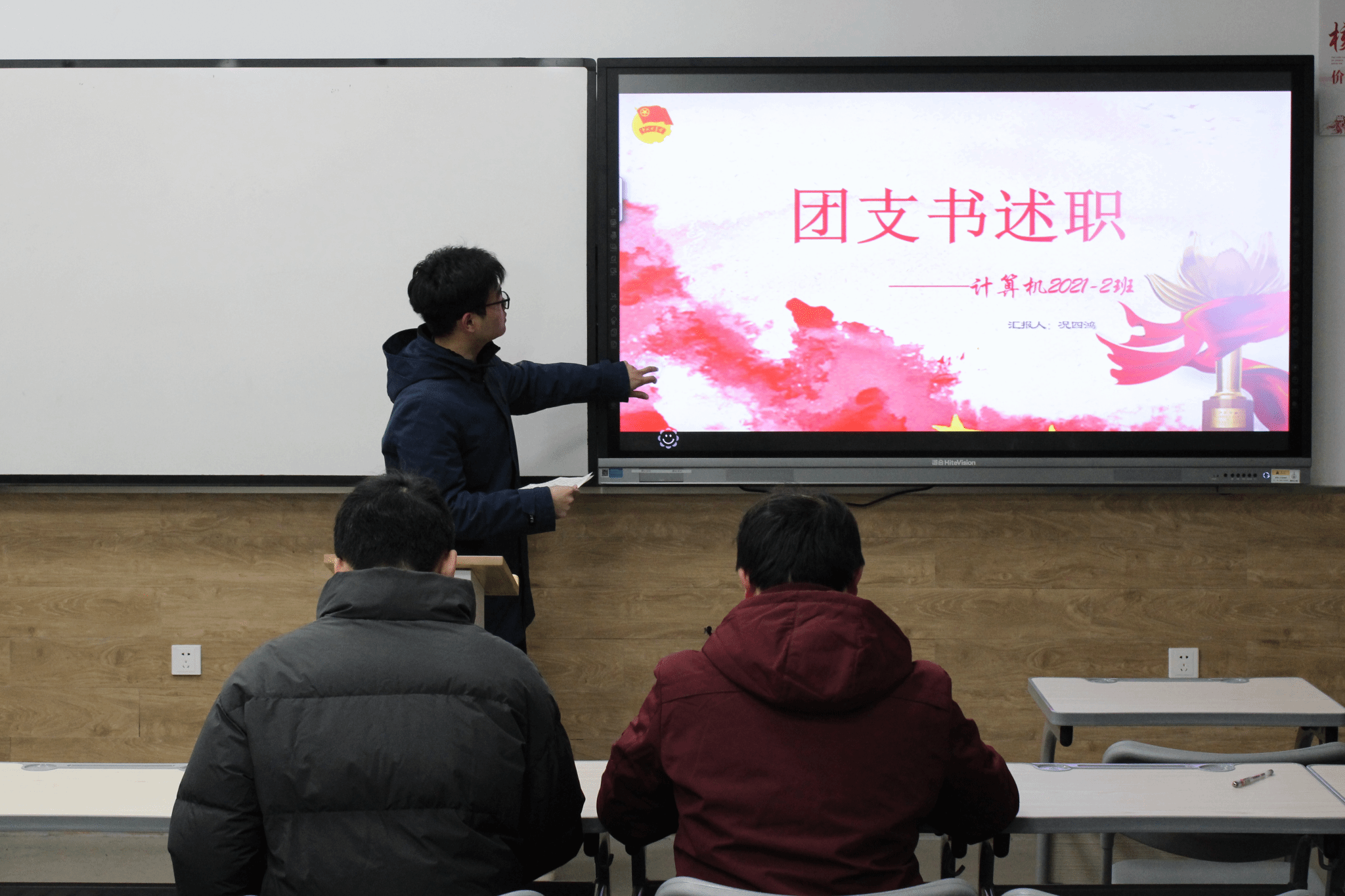大会伊始,各班团支书依次上台进行述职,主要从团支部简介、团支部中存在的问题以及下一阶段工作的改进与措施等方面进行工作汇报。此外,各班团支书还详细地汇报了所在团支部过去一年中取得的成绩和团支部各成员取得的成绩,并对明年的工作提出新的期待与展望,明了做好团支书工作的决心。