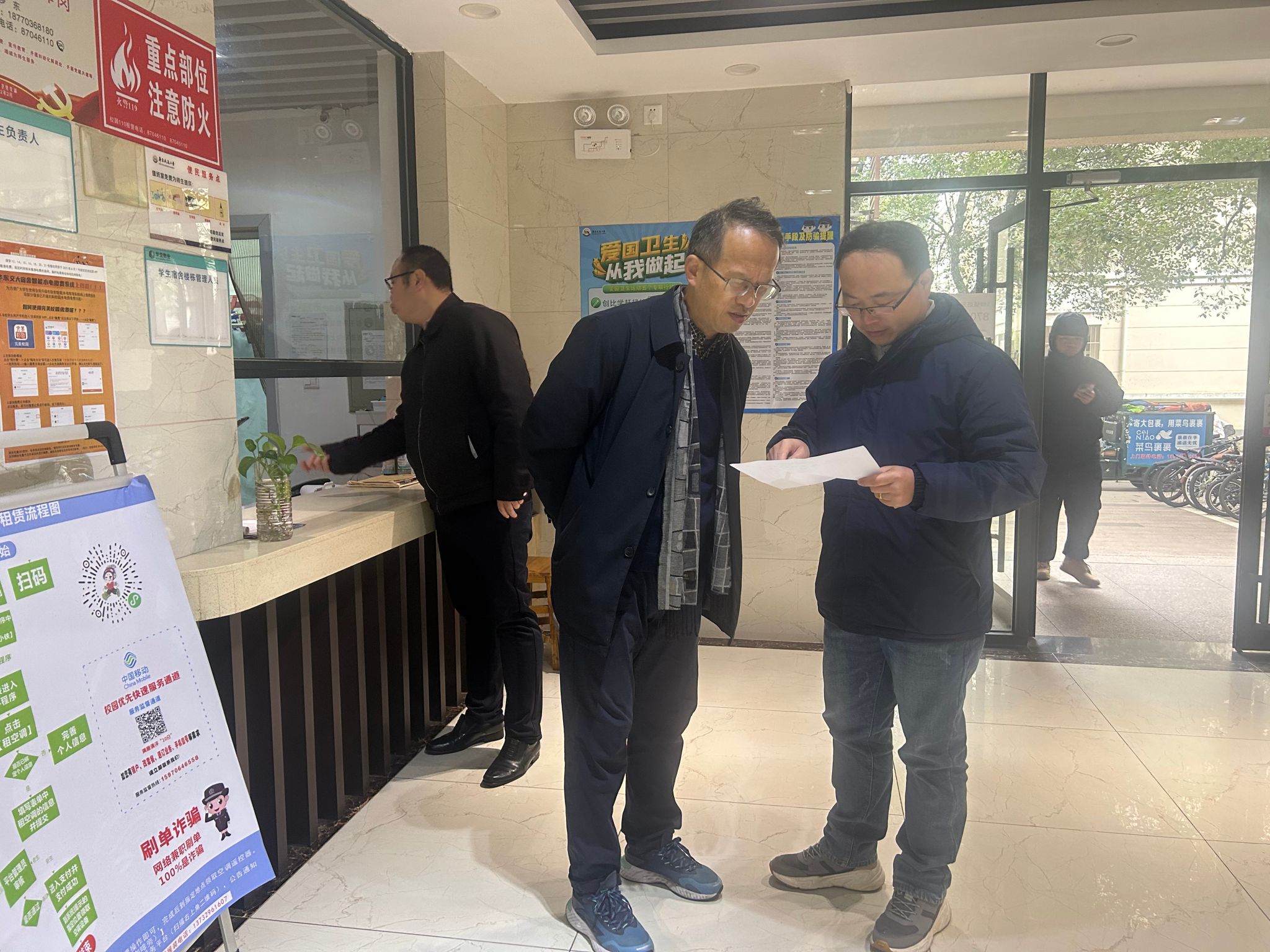 走进学生宿舍,何仲坚一行查看了宿舍内外的卫生环境和安全状况,提醒留校学生要做好安全防范。他强调,要落实落细学校宿舍安全管理规章,形成常态化、长效化安全工作管理机制,筑牢安全底线,保障宿舍安全。