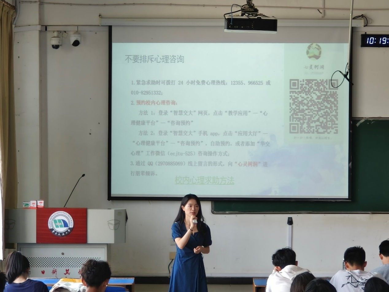 孙老师说:“首先存在心理问题时不用过于焦虑,坦然面对即可,其次将注意力从当前困扰转移到其他感兴趣的事,另外通过跑步等运动进行合理宣泄也是一种简单易行的办法,最后可以主动和朋友或老师进行沟通交流寻求帮助。”另外,孙老师贴心地给出校内心理咨询预约方法,鼓励存在心理健康问题的同学勇敢地迈出第一步,同时也呼吁所有同学互相关注班级同学的心理健康,做到有问题适时关心,及时反映。