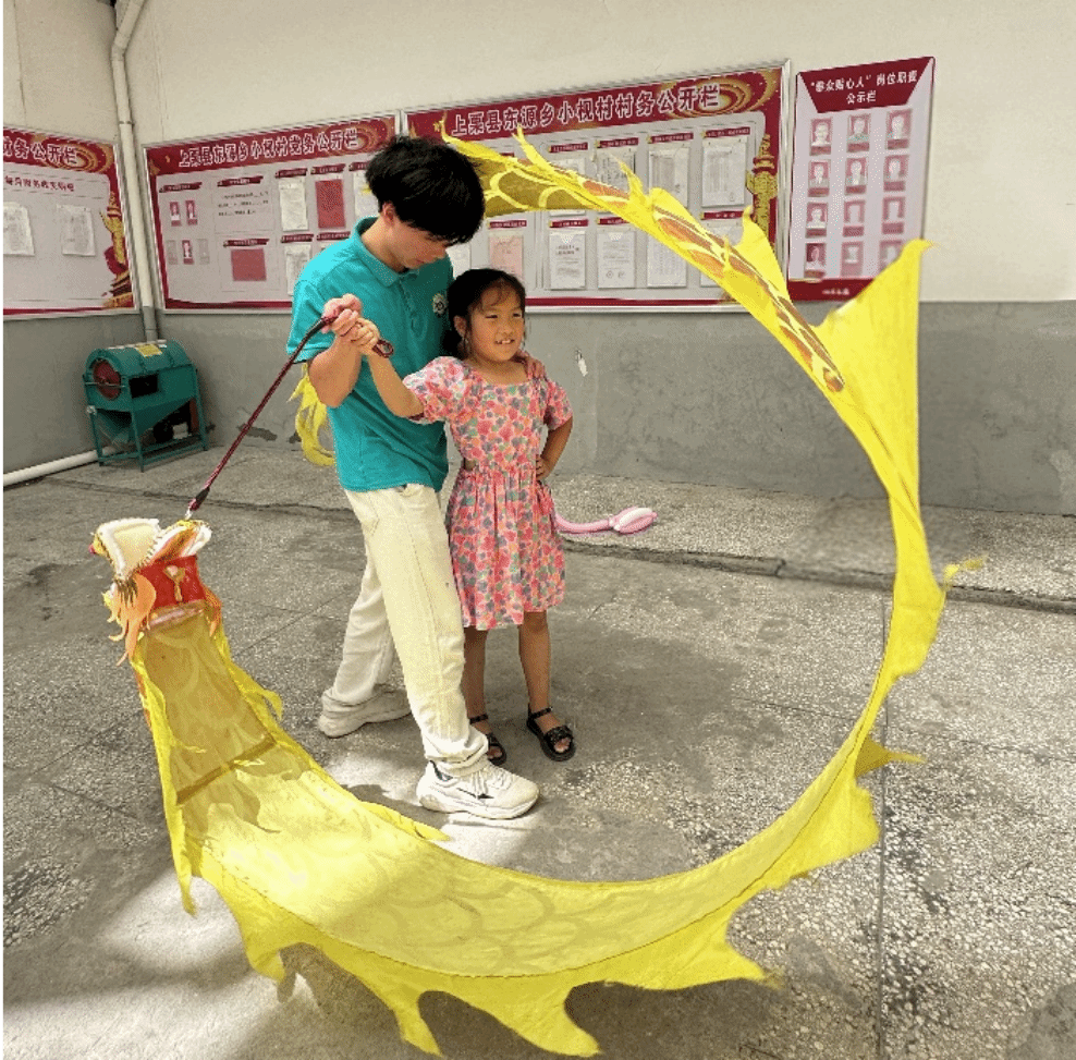 一场开在小枧村留守儿童支教活动中的舞龙课,是最让我难以忘怀的经历。当我拿起彩带龙,感受到那份沉甸甸的重量时,我深知自己肩负着传递传统文化的重任。