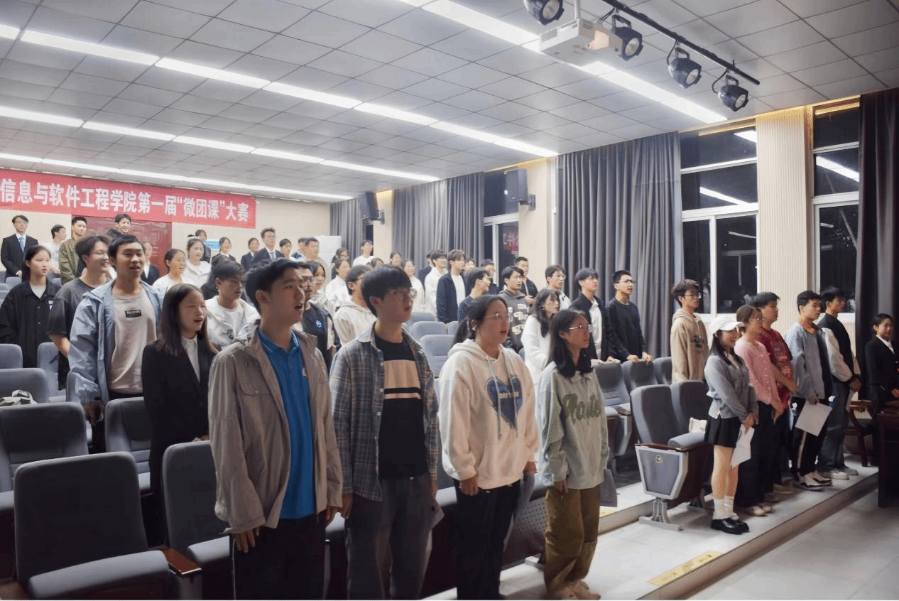 大赛开始,全体与会人员高唱团歌《光荣啊,中国共青团》,激昂的歌声彰显了团员们饱满的热情。