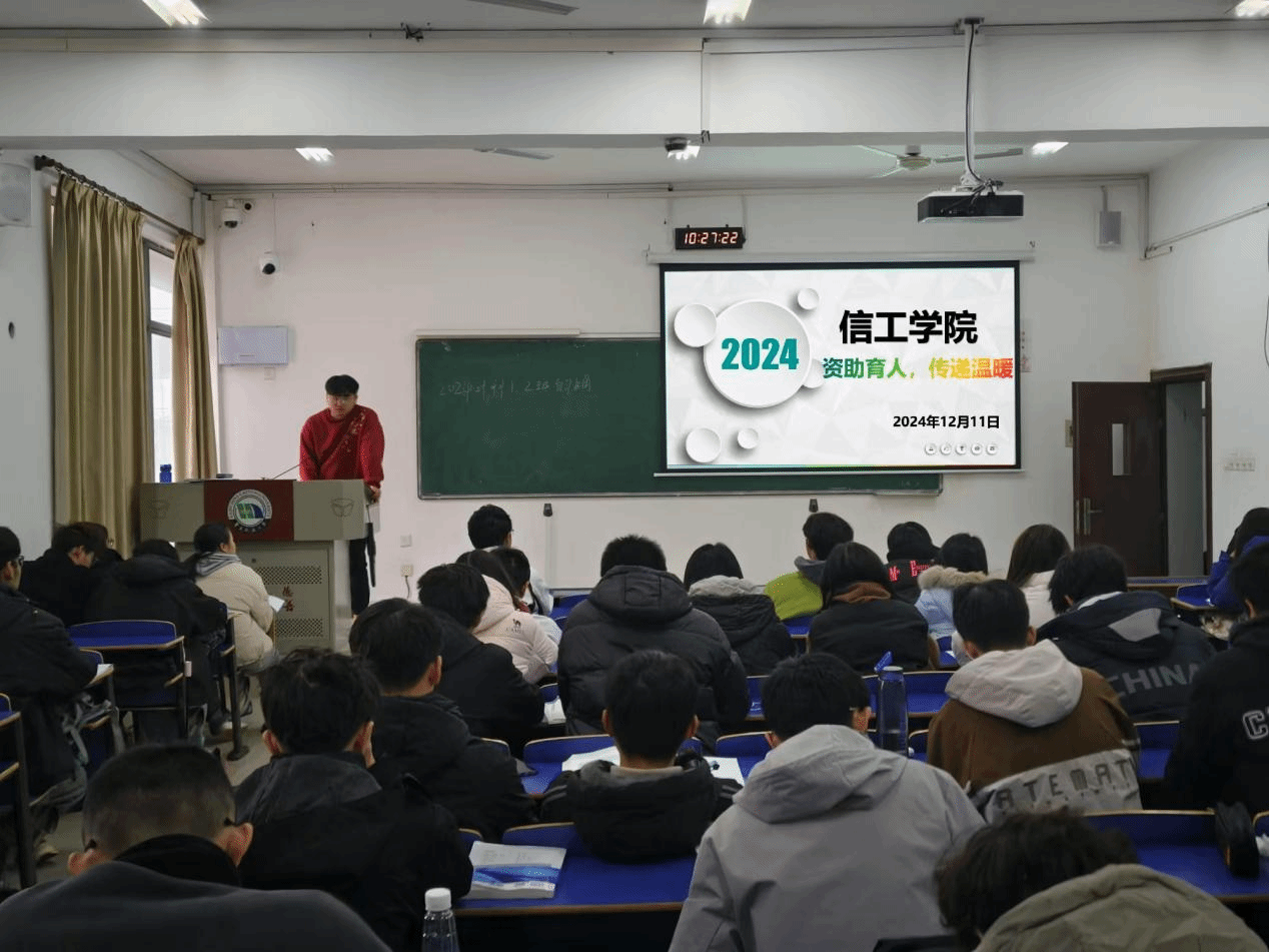 从2024年12月09日至13日,学院资助宣传大使们走进2024级学生班级,召开了资助政策的宣讲活动,他们详细介绍了国家奖学金、国家励志奖学金、国家助学金以及国家助学贷款等多种资助项目的标准和申请条件。重点向同学们介绍了勤工助学,希望能让有需要的同学有更多机会通过劳动获取报酬以减轻家庭负担,同时也可以提升他们的一些职业技能和社会实践能力。同时,还向同学们介绍了学校资助中心举办的一些“暖心慰问”活动。