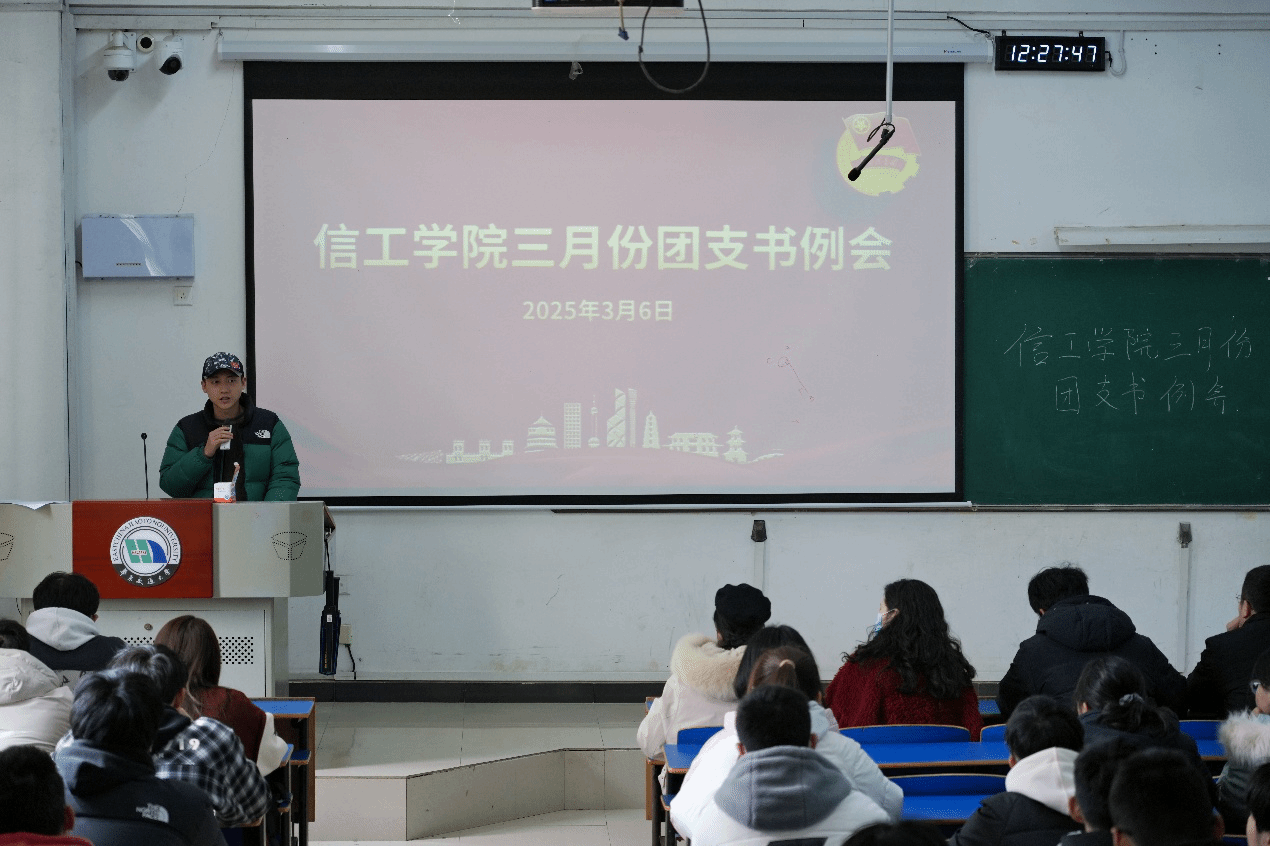 3月6日中午,信工学院在教14栋112室召开新学期第一次全院团支书例会,由院团委书记李萌萌主持,团委副书记郭招男、肖志鹏、洪亚聪、谢昊明(学生)、周栩良(学生)及学院全体团支书参加会议,共谋新学年基层团组织建设发展新篇章。