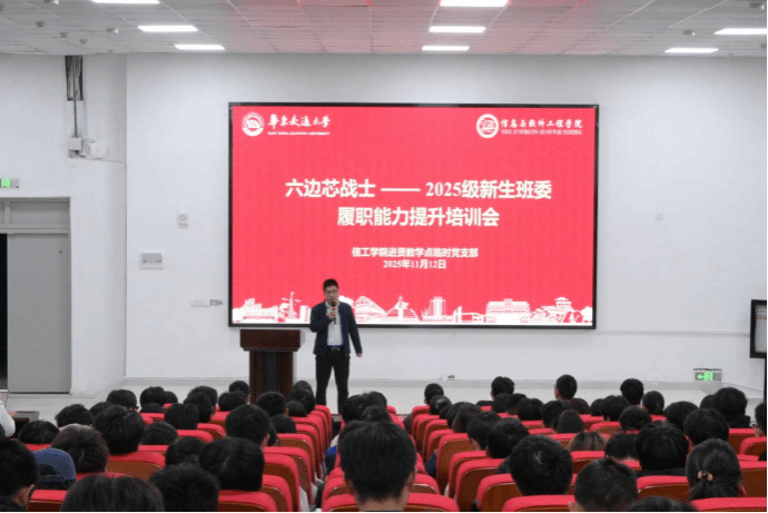 2025级班级学生干部队伍建设,提升履职能力与服务意识,实现“保障教学秩序稳定,服务新生成长成才”的目标,2025年11月12日,学院于进贤教学点教学楼509报告厅举行2025级新生班委履职能力提升培训会。院党委书记魏永峰、院党委副书记冯荣刚出席此次会议。进贤教学点全体辅导员、2025级新生班委共计270人参会。
